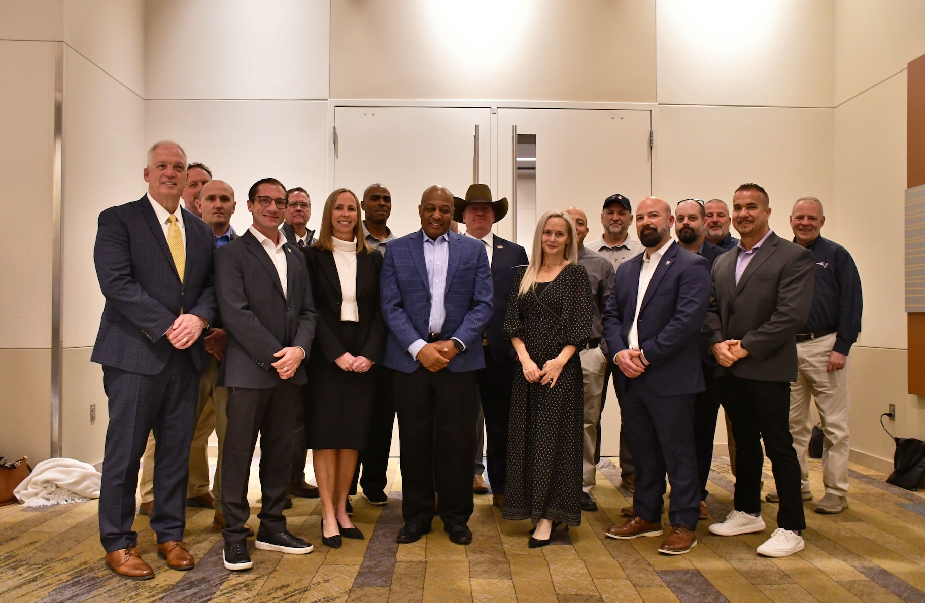 Walt Eady (center) executive director, Technical Directorate, Defense Contract Management Agency, poses with members of the DCMA safety team during the opening day of the International Explosives Safety Summit at the Phoenix Convention Center, Jan. 21, 2026. (Photo by Alun Thomas, DCMA Public Affairs)